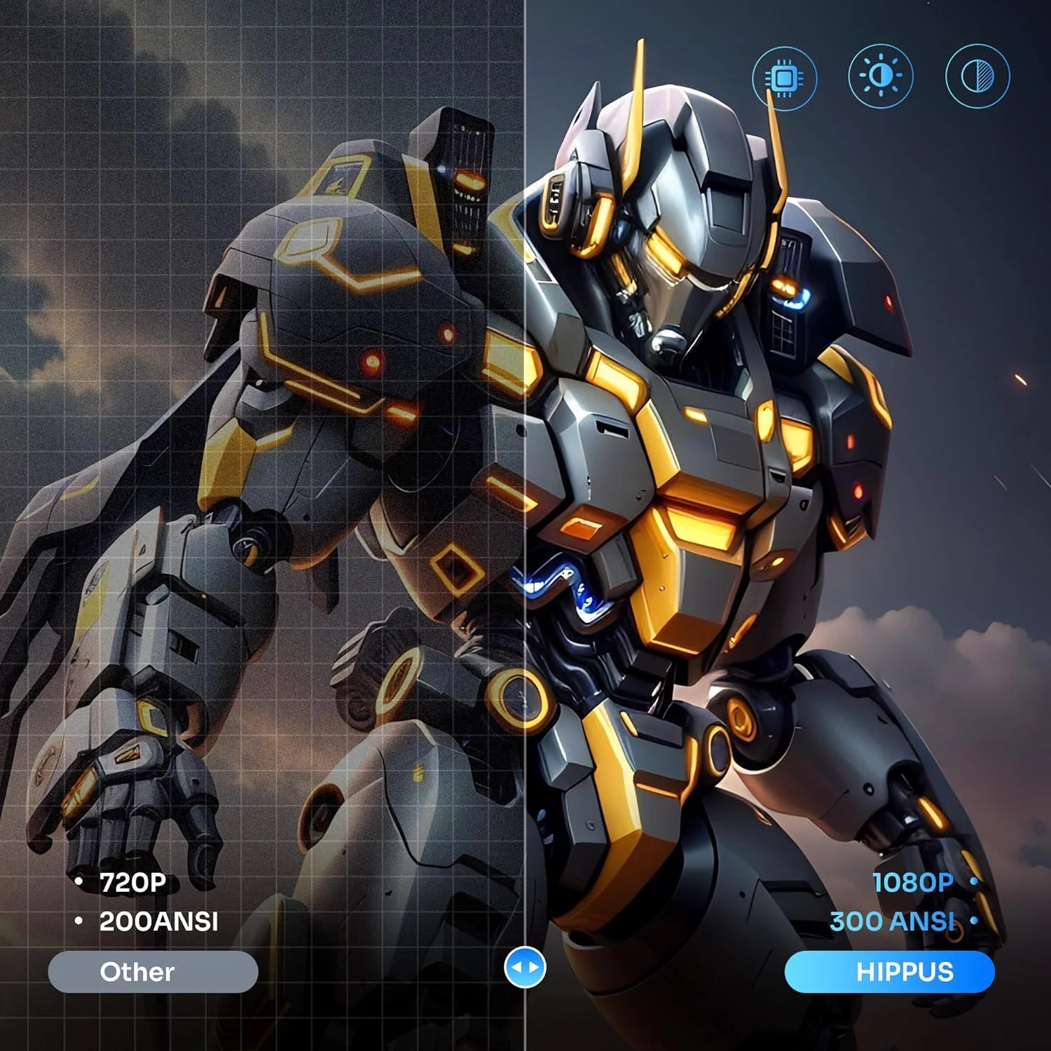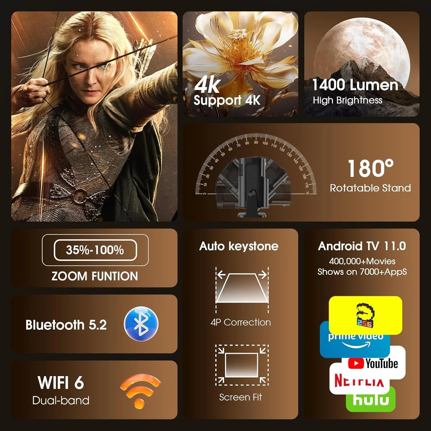 Experience stunningly bright and vibrant visuals with 650 ANSI Lumens (equivalent to 6500 Lumens brightness). Every scene comes to life with rich contrast (1000:1–2000:1) and true HD clarity (1280×720p native, supports 1080p). From epic adventures to cozy rom-coms, enjoy a theater-quality image on screens up to 400 inches wide!